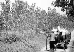 近日,贾岭镇两名员工为林木喷洒杀菌剂。针对杨树食叶害虫在周围县(市)造成的灾情,项城市日前下发通知,要求做好害虫防治工作,保护今年创建林业生态市成果。(崔子岩 高昱 摄)