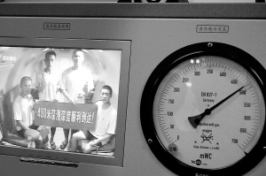 我国创造亚洲模拟饱和潜水载人实验深度新纪录 仪表显示实验舱内加压到480米,潜水员打出横幅纪念这一时刻。8月21日,随着4名潜水员15时30分走出饱和潜水高压实验舱,一项亚洲模拟饱和潜水实验深度新纪录由此诞生——493米模拟巡潜深度、480米氦氧饱和模拟潜水实验的成功,使我国成为世界上第9个掌握突破400米深度、潜水员直接暴露在高压环境下作业技术的国家。 新华社发(余华梁 摄)