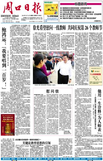 徐光看望慰问一线教师 共同庆祝第26个教师节