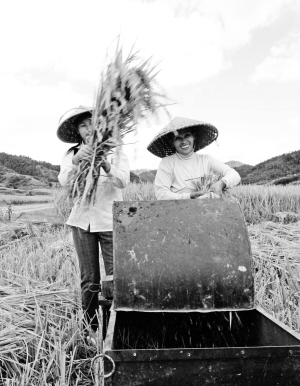 金色大地迎丰收 9月15日,广西凤山县平乐瑶族乡洪力村农民在稻田里收割稻谷。金秋时节,广西凤山县4.9万亩中稻陆续成熟,一片片金黄的稻田,呈现一派丰收的景象。 新华社发