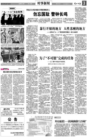 如今,在柳条湖附近,昔日占领者建立的胜利碑,推倒后被一座纪念馆所替代。一座有6层楼高的残历碑矗立在那里,大碑好似一页日历轻轻翻开,但永不闭合,定格在“1931年9月18日”。