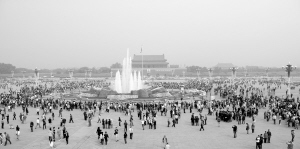 天安门广场 “牡丹”花坛摆放完毕 天安门广场俯瞰(9月25日摄)。当日,北京天安门广场大型“牡丹”花坛摆放完毕,吸引众多中外游客。根据2010年天安门广场国庆花卉布置方案,花坛整体设计以“花开盛世”为主题,采用形式创新、规模缩减的花卉布置方案。其中,广场中心花坛直径50米,通过立体花卉装饰演绎出“花”的形象,寓意祖国繁荣富强,国泰民安。