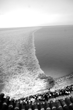 9月25日,钱塘江“一线潮”经过浙江海宁沿岸。 当日是农历八月十八,“八月十八潮,壮观天下无。”这是宋代诗人苏轼形容钱塘江潮的著名诗句,数十万名中外游客来到浙江海宁盐官镇观看波澜壮阔的钱塘江潮。
