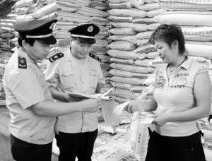 目前,扶沟县已进入秋收冬种的关键时期,为确保农资市场安全,扶沟县工商局组织执法人员在全县范围内组织开展了“红盾护农保秋冬种”专项执法行动。图为该局执法人员在一农资经营场所察看农资进销货台账。(卢付昌 姜志勇摄)