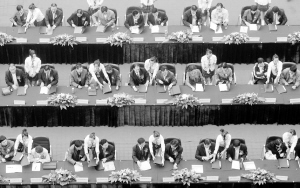 校企“联姻” 共谋发展 这是企业和技工院校的代表在“百校千企合作大会”现场签约(9月26日摄)。当日,河南省“百校千企合作大会”在郑州商业技术学院举行。来自全国各地的237家企业和河南省69所重点技工院校参加了大会,双方现场签订了招聘用工和人才培养的协议。新华社发