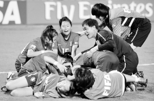 9月25日,韩国队球员庆祝胜利。当日,在特立尼达和多巴哥举行的国际足联17岁以下女足世界杯决赛中,韩国队经过点球大战以8比7战胜日本队,夺得冠军。
