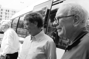 “股神”巴菲特和比尔·盖茨考察比亚迪 9月28日,巴菲特(右)、盖茨(中)和巴菲特的搭档查理·芒格在比亚迪惠州研发制造基地的铁电池车间门口。当日,有“股神”之称的沃伦·巴菲特和微软创始人比尔·盖茨一起考察比亚迪在深圳和惠州的研发制造基地。 新华社记者 张毅 摄