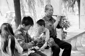 图③东新区周口公园里,许多大人带着孩子在游玩。记者 王映摄
