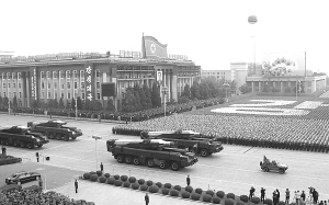 10月10日,在朝鲜首都平壤,受阅部队接受检阅。