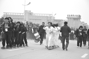 “敲锣打鼓庆丰收” 威风锣鼓表演拉开了太康县首届农民运动会的序幕。接下来的赛事更是令人目不暇接。在60米提水保苗赛场,随着裁判一声令下,6名女队员手提双桶奋力向前奔跑,有一名队员虽然跑得快,水却洒了一路。围观的群众说:“干农活也得用巧劲呀。”在400米扛粮赛区,4名壮小伙各扛50斤重的一袋玉米,脚上就像抹了油,飞奔而去,掌声“哗哗”响起。拔河、篮球赛场上呐喊声不断,农用四轮车障碍赛更是吸引了人们的眼球,只见参赛选手驾驶着农用四轮车在多个障碍间穿梭自如,来自独塘乡刘庄村的程高产仅用29秒就完成了双桩前进、单桩后退“双S”形赛程,获得了小四轮赛第一名。“这项比赛有助于提高农用车驾驶员的驾驶技术水平,更好地运用于生产。”裁判员冯涛告诉记者。