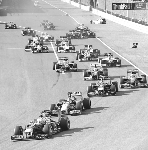 10月10日,红牛车队德国车手维特尔(前)在比赛中。当日,在一级方程式(F1)大奖赛日本站比赛中,维特尔以1小时30分27秒323的成绩夺得冠军。 新华社/法新