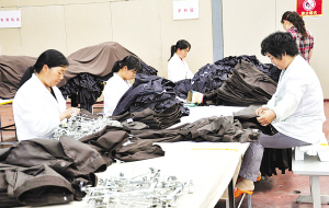 今年以来,项城市坚持把加快科技进步、调整产业结构、优化产业升级落实到具体项目上,紧紧围绕技术改造、提高产品附加值上项目,不仅提升了产品附加值、拉长了产业链条,而且还有效提高了企业的市场地位。图为项城市一家制衣公司生产车间一角。(记者 王映 摄)