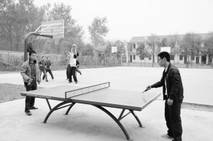 昨日,川汇区城北办事处马庄行政村的村民在修建好的体育场上打乒乓球、篮球,享受健身的乐趣。近年来,川汇区共计在全区农村建设了41个农民体育健身场地。(记者 李寒 摄)
