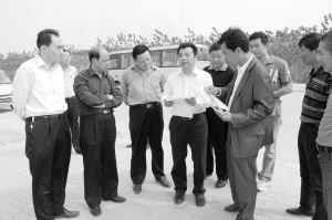 本报讯 (记者 侯俊豫/文 杜忠勇/图 )10月6日,县委书记任连军、副县长张海洋带领相关单位负责人深入工业园区和五彩路施工现场察看重点项目建设情况。眼下,五彩路和工业园区内黄花菜深加工、牧鹤饲料等重点项目建设正有序推进,工地上各项建设如火如荼。