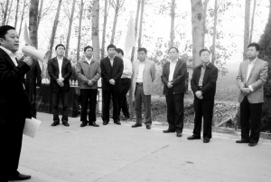 10月13日,项城市交通运输局负责人向与会人员介绍项城农村公路养护做法。当日上午,周口市农村公路养护工作现场会在项城召开,旨在学习推广项城农村公路养护工作经验。(记者 杨光林 摄)