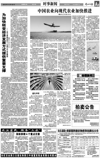 中国农业向现代农业加快推进