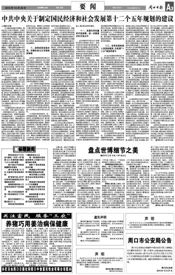 中共中央关于制定国民经济和社会发展第十二个五年规划的建议