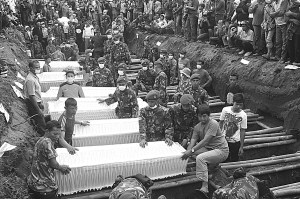 另据报道,在海啸灾区以东1300多公里的印尼中爪哇省,默拉皮火山继26日喷发并造成33人死亡后,又在28日和29日喷发炙热的火山灰。目前尚未有新的人员伤亡报道。