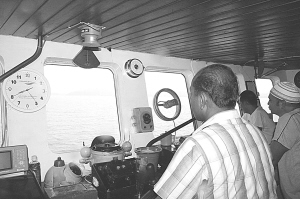新华社记者28日下午6时乘客轮离开西苏门答腊省首府巴东,经过14个半小时的航行,抵达北巴盖岛的SIKAKAB港口,记者将从这里再乘船去灾情严重的南巴盖岛。这艘客船上大部分是搜救队员、记者和探亲者,共200人。记者与4名法国籍非政府组织人员交谈,他们表示,他们的任务是尽快建立通讯设施,以便恢复灾区与外界的联系。船上还载有100吨政府和民间捐助的物资。