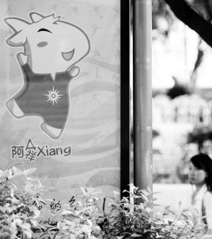 ▲无处不在的“祥和如意乐羊羊” 随着第16届亚运会盛事的临近,赛会吉祥物“祥和如意乐羊羊”活泼开朗的身影在广州街头巷尾随处可见。图为广州城内一处“祥和如意乐羊羊”标识。