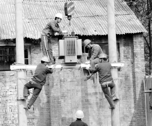 11月3日,太康县电业局几名员工在该县城关镇马庄村为创办塑料制品加工厂的张明旺架设变压器。该局为实现“保增长,保民生,保稳定”的目标,及时打造绿色服务通道,为小型加工企业搭建平台,在报装环节、送电时间等方面给予很大支持。(许栋玉 摄)