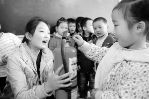 11月9日,在淮阳县一幼儿园内,孩子们在学习消防知识和灭火器材的使用。当日是“119”宣传日,该幼儿园开展了消防知识学习宣传活动,向孩子们灌输消防安全知识。(侯俊豫 杨学伟 摄)