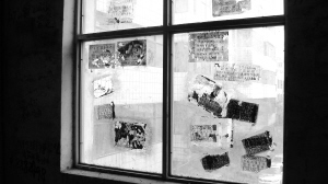 左图:窗户上也贴满小广告。