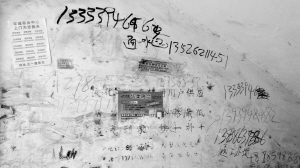 上图:楼道内白墙上满满的小广告。