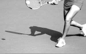 11月17日,一名选手在第16届亚运会网球女单首轮比赛中回球。