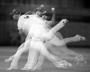 11月16日,中国队投手卜涛在比赛中投球(多重曝光)。当日,第16届亚运会棒球预赛第12场比赛在泰国队与中国队之间进行,中国队以7比0战胜泰国队。