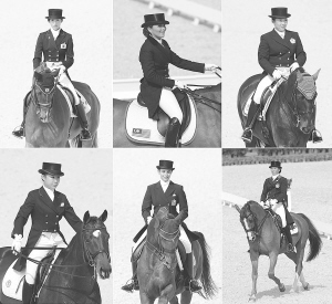 盛装舞步——英姿飒爽的女骑手 11月17日,在第16届亚运会马术盛装舞步个人决赛的参赛选手中,有6名女骑手,她们飒爽英姿,惊艳出场,随着悦耳动听的乐曲与自己的骏马翩翩起舞,为观众带了一场视觉盛宴,成为竞技场上一道美丽的风景。图为六名女骑手的拼版照片。