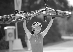 自行车——女子山地自行车:中国选手包揽金银 11月18日,中国选手任成远冲过终点后庆祝。当日,在广州进行的第16届亚运会女子山地自行车越野赛决赛中,中国选手任成远1小时46分35秒82获得金牌,史庆兰以1小时53分07秒99获得银牌。