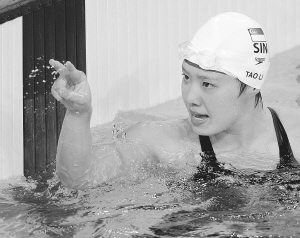 游泳——“我要吸引全世界的目光” 11月18日,新加坡选手陶李获胜后对着摄像机表演。