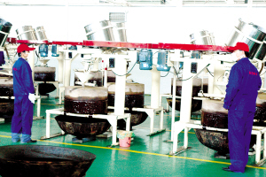 今年以来,鹿邑县突出“工业主导、项目主线、招商主措、统筹主调”的工作重点,以项目建设为总抓手,抓项目带产业,上项目促开发,靠项目调结构,用项目扩总量,取得了明显成效。图为该县一企业的生产车间。(记者 李寒 摄)