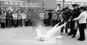 冬季安全教育进校园 11月25日,消防官兵在枣庄市文化路小学指导学生进行灭火演练。当日,山东省枣庄市公安局市中分局文化路派出所联合卫生、消防部门在当地的文化路小学校园内开展“校园安全‘红绿灯’”活动,有针对性地对学生进行冬季安全防范教育。新华社发