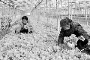 左图:川汇区城北办事处后石店村的菜农们在管理大棚蔬菜。