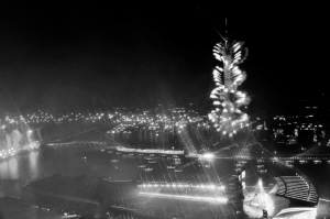 11月27日,焰火在广州塔上绽放。当日,第16届亚运会闭幕式在广州举行。