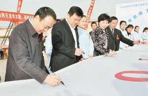 看到胸佩红丝带的市委书记、市长来到大家身边,志愿者十分振奋。在由市疾病预防控制中心志愿者打出的签名横幅上,毛超峰、徐光认认真真地签上了自己的名字。