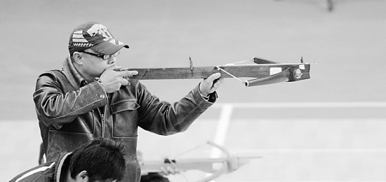 12月5日,云南哈尼族选手李晓黎在男子传统弩立姿比赛中。他以235环的成绩获得冠军。当日,全国射弩邀请赛在贵阳市拉开战幕。此次比赛共吸引了12支代表队、64名运动员参加6个项目的角逐。 新华社记者 刘续 摄