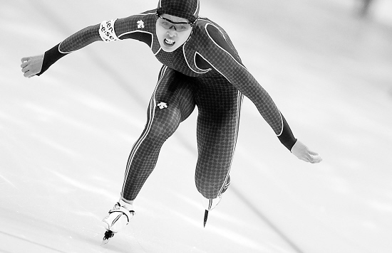 12月5日,中国选手于静在比赛中。当日,在2010/2011赛季国际滑联速度滑冰世界杯赛长春站女子500米比赛中,中国选手于静以38秒27的成绩获得亚军。 新华社记者 王昊飞 摄