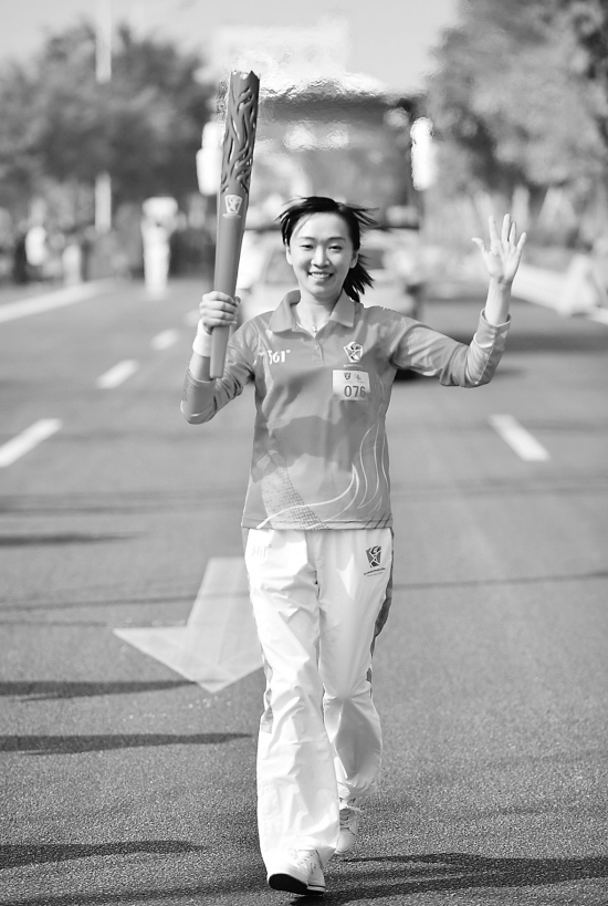 12月5日,火炬手原爱冰在传递中。当日,2010广州亚残运会圣火开始了在广州为期7天的传递。传递活动首日,圣火从“广州城市客厅”花城广场出发,经过98名火炬手约8.8公里的手手相传,最终抵达员村五横路广场。6日,亚残运会圣火将在广州市萝岗区绿轴广场至萝岗会议中心路段继续传递。 新华社记者 梁旭 摄