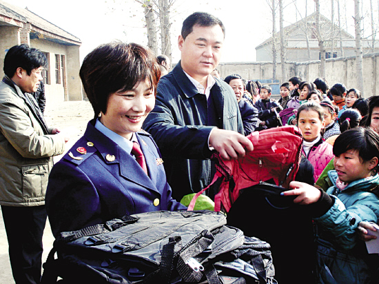 在创先争优活动中,周口市工商局开发区分局积极开展农村精神文明帮扶和关注留守儿童活动。近日,该分局领导来到帮扶联系点——鹿邑县邱集乡韩楼行政村看望留守儿童,为200名留守儿童送去了书包、普法书籍,把温暖送给留守儿童,同时还为村委会送去电脑、电视机等,受到了当地群众的好评。 崔健 王荷茹 摄