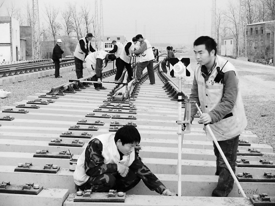 12月3日,漯阜铁路周口新站建设工程正在紧张施工。据悉,周口新站移站工程总投资6.3亿元,动用土方75万立方,设计道岔55组,建成使用后将成为漯阜铁路线上最大的车站。( 记者 田维国摄)