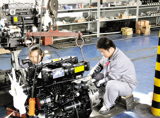 ▲扶沟县坚持“工业立县”不动摇,积极创优软硬环境,以棉纺织造、机械制造、食品加工三大支柱产业为依托,以投资规模大、科技含量高为重点和主攻方向,大力进行招商引资。图为该县一机械制造公司的工人正在紧张工作。(卢付昌 摄)