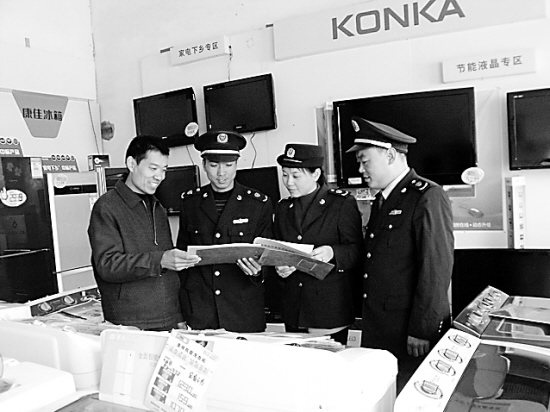 商水县姚集乡工商所不断加大对“家电下乡”市场的监管力度,从主体资格、产品质量、商标使用等方面进行全面把关,防止假冒伪劣家电商品流入农村市场,切实维护消费者的合法权益。(李胜利 摄)