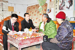 12月7日,太康县法院的两名法官来到一赡养案件当事人家中进行回访。12月份为河南省法院系统开展的“万名法官回访千家企业、万名当事人”活动月,太康县人民法院组织法官对办理过的案件进行回访,面对面与群众沟通交流,并认真填写回访登记表,对在回访中发现的问题及时解决,努力实现案结事了。(李康 摄)