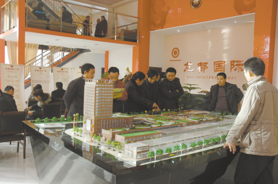 12月11日,龙都国际广场二期开盘,推出63套房源,当天销售57套,销售率超过90%。业内人士分析,该楼盘热销的主要原因是这里已经成熟的建材市场和新颖独特的商业规划。图为选房现场。李国阁 摄 龙都国际广场二期开盘