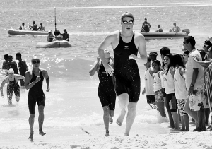 12月11日,参加女子组比赛的选手在比赛中。当日,海上马拉松游泳比赛在巴西里约热内卢科帕卡巴纳海滩举行,来自美国、墨西哥、巴西等国家的选手将在海上游完10圈全程共计1万米的赛程。