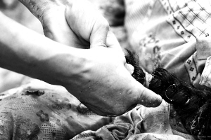 2010年8月7日晚至8日凌晨,甘肃省甘南州舟曲县强降雨引发特大滑坡泥石流灾害,造成超过1200人遇难,400余人失踪,众多村庄的房屋被整体掩埋,多条道路被泥石流阻断。解放军、武警部队机动师、森林、水电、交通等多个警种以及民兵等共数千人展开救援。这是8月12日,救援人员将遇难的8岁女孩韩璇从5米多深的淤泥中挖出后,其父亲韩如栋用清水将女儿清洗干净后,为女儿最后一次编辫子。 新华社记者 陶明 摄