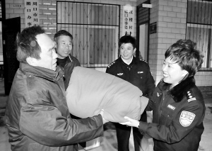 12月13日晚,受强冷空气的影响,雨雪降临我市,气温骤然降至零下。当天夜里,市公安局文昌派出所负责人走进辖区内各警务室,为民警们送去棉被、电暖器等物品,让基层民警感受到了浓浓的暖意。(记者 李寒 摄)